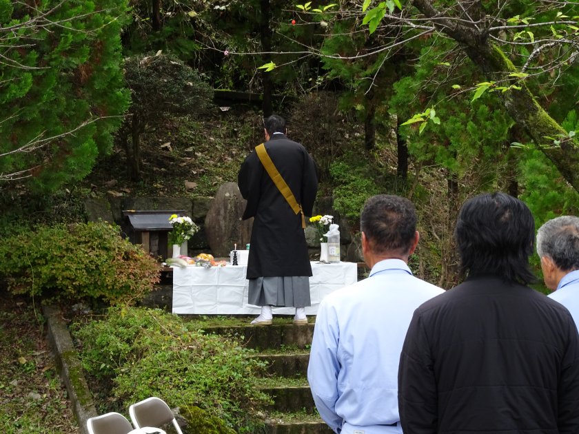 本日は低気圧の通過で朝から雨で、計画した漁族供養祭は急遽室内で執り行われ、参列した漁協役員や漁場監視員、釣場職員は、本年を回顧しながら漁族に感謝すると共に、また来年の豊漁に期待を込めて、特設の供養壇に手を合わせました。
