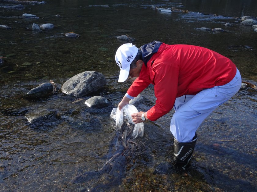 水系全体では60kg約1200尾、中津川には10kgを田代運動公園前、角田大橋下流の平瀬と深みに放流いたしました。