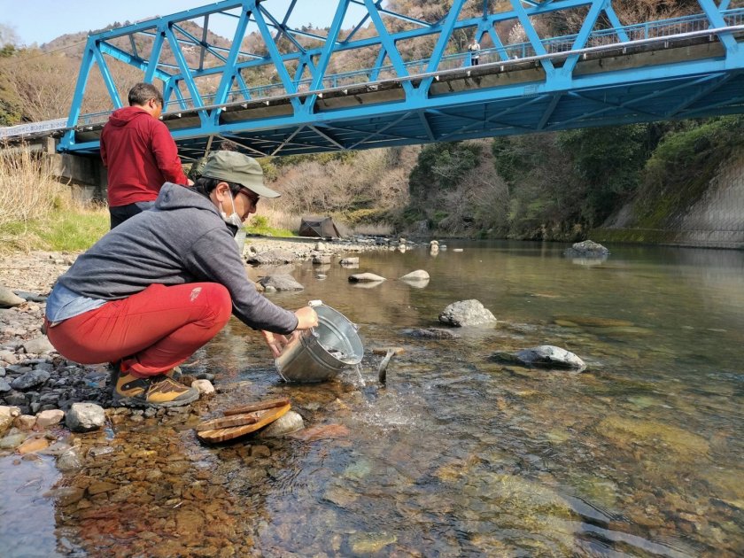 上流にダムを抱える相模川と中津川は年々河床が固くなり、アユの産卵に適さないところもあります。来年のアユ遡上に期待を込めて作業を行っていました。