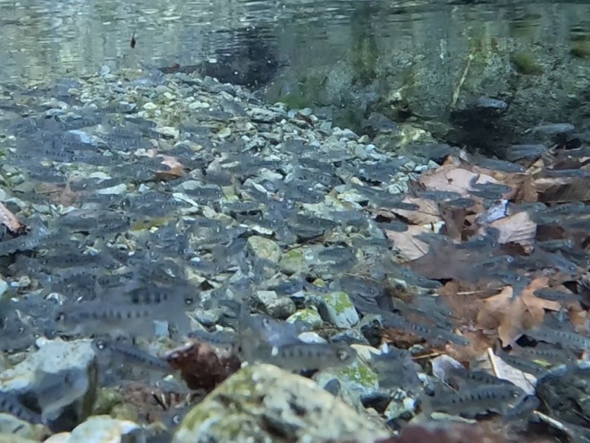 【本谷川の稚魚水中写真】